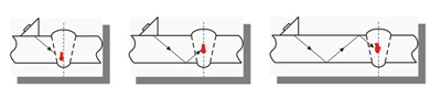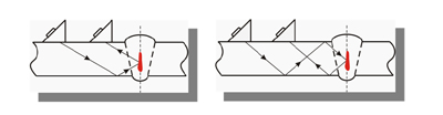- эхо-зеркальный метод служит для обнаружения дефектов и определения их типа совместно с эхо-методом, оценки развития протяженности дефекта по сечению шва и основного металла;